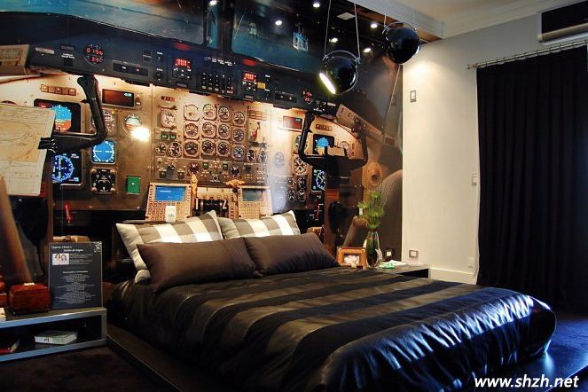 我們看這款設(shè)計(jì),可以感覺得到業(yè)主對飛機(jī)的熱愛到了癡迷的程度,整個臥室被改造成了駕駛艙,而床頭背景墻的設(shè)計(jì)更是成為了居室的點(diǎn)睛之筆,各種方向盤的設(shè)計(jì),在燈光的照耀下,顯得溫馨而舒適,睡在這樣一個臥室空間,整個人就好像漂浮在空中一樣,特別的悠閑自在。整個空間的色彩并不艷麗,中性的色彩更凸顯出時尚奢華的感覺。