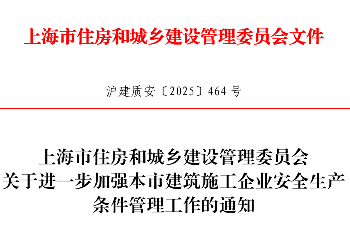 為嚴(yán)格落實(shí)安全生產(chǎn)治本攻堅(jiān)三年行動(dòng)工作要求,壓緊壓實(shí)施工企業(yè)安全主體責(zé)任,夯實(shí)本市建筑施工領(lǐng)域安全基礎(chǔ),市住房城鄉(xiāng)建設(shè)管理委就進(jìn)一步加強(qiáng)本市建筑施工企業(yè)安全生產(chǎn)條件管理工作通知如下。