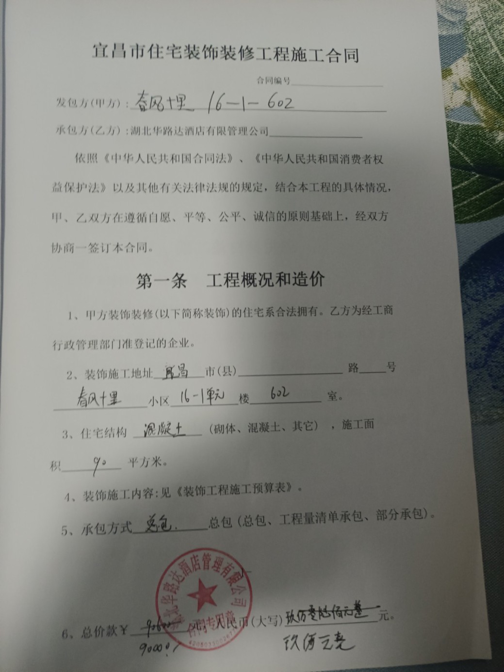 | 房型 | 三房 | 聯(lián)系地址 | 湖北省宜昌****** | 項(xiàng)目負(fù)責(zé)人 | 華浩 |