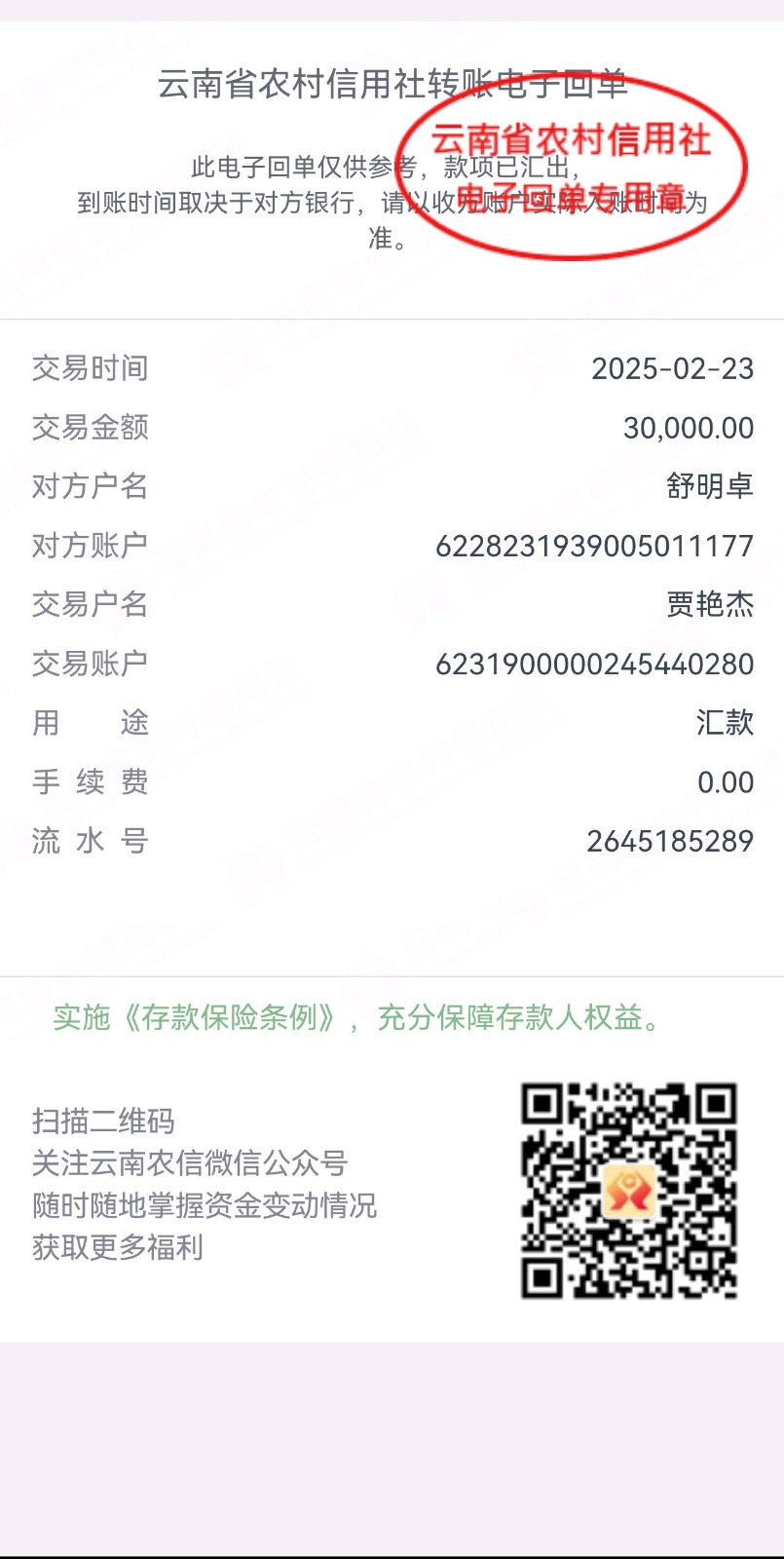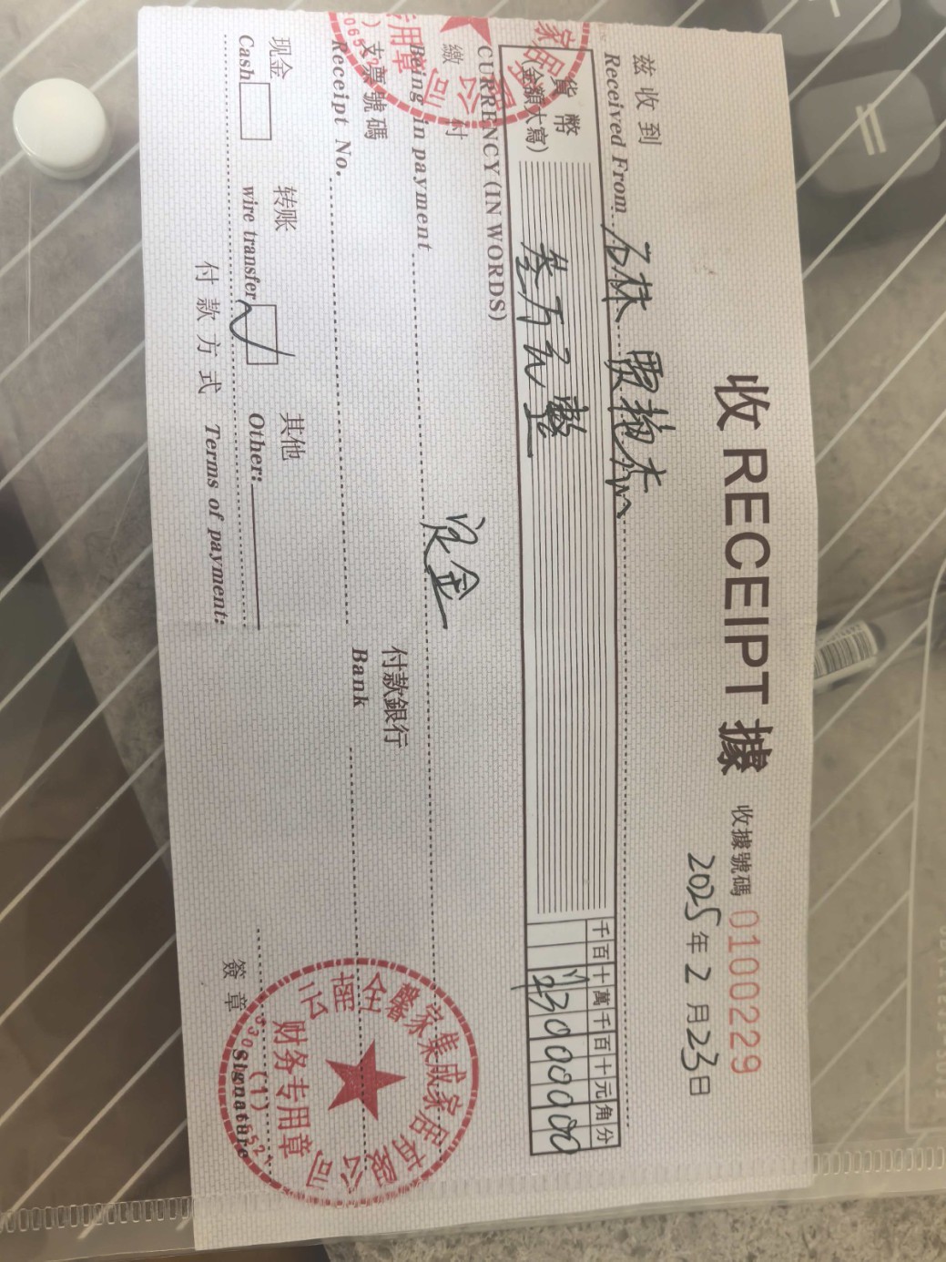 1.交了訂金30000元在云南全鑫家集成家居有限公司的法人舒明卓的私人賬戶上,沒有給我們?nèi)魏伟l(fā)票,只給了一張手寫的收據(jù)