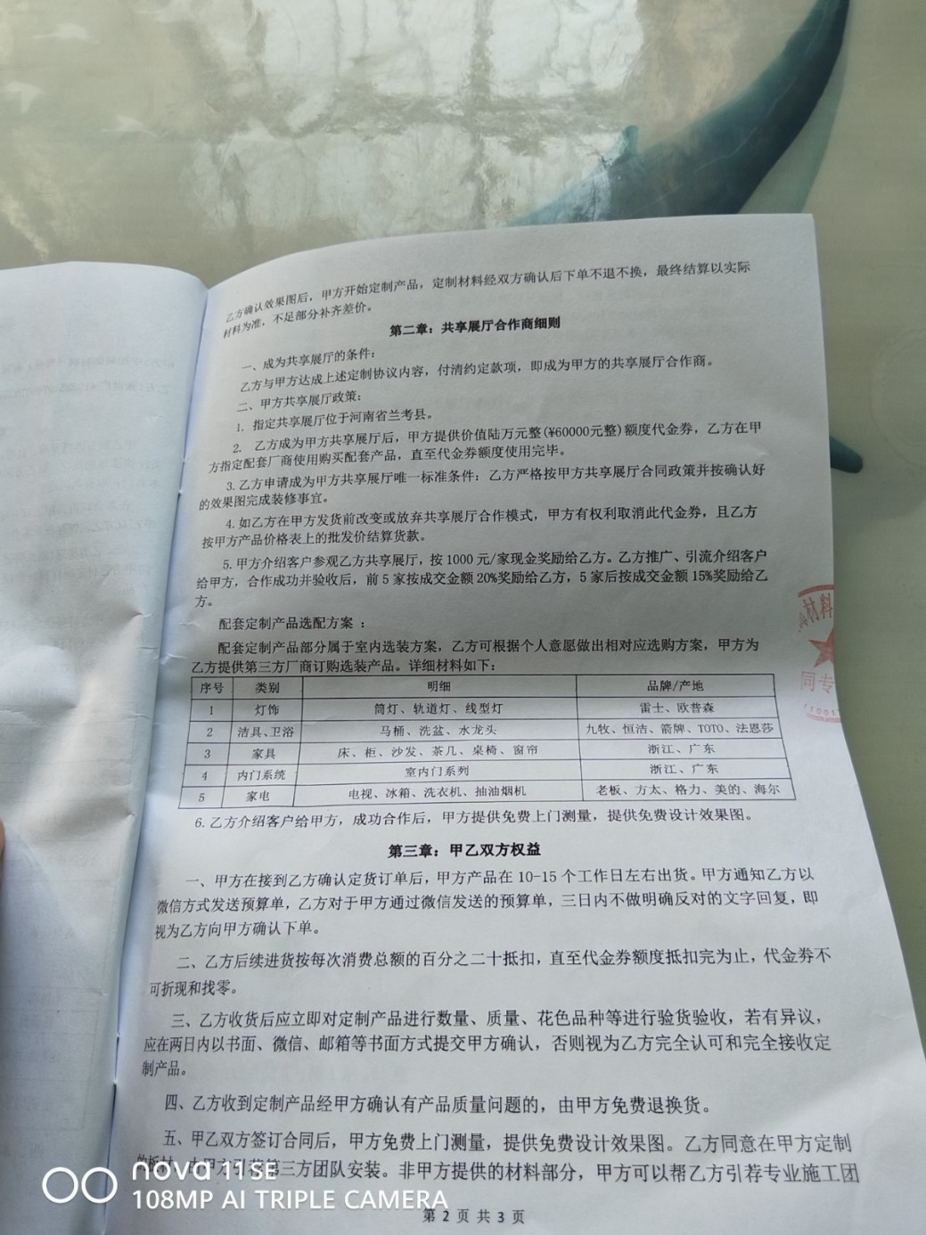 2025 年 8 月,我刷到中柏裝飾材料鄭州有限公司 “8 萬(wàn)整裝拎包入住” 的抖音廣告,被低價(jià)吸引。8 月 3 日,我與家人前往考察,業(yè)務(wù)經(jīng)理黃總監(jiān)接待時(shí)稱(chēng)材料合規(guī)、價(jià)格低于出廠價(jià),展示樣板房并承諾:除水電外全屋整裝(含瓷磚、吊頂墻面、衣柜櫥柜、衛(wèi)浴燈具等,依效果圖施工,付款即可入?。?zèng)窗簾、沙發(fā)、品牌家電等軟裝,還明確物流、運(yùn)費(fèi)、工期細(xì)節(jié);另提出樣板房每參觀一次給 1000 元,介紹客戶(hù)前 5 家返利 20%、5 家后 15%。利用我 “省時(shí)省心” 的需求,雙方約定總價(jià) 9.6 萬(wàn)元,當(dāng)日我支付 2 萬(wàn)元意向金。