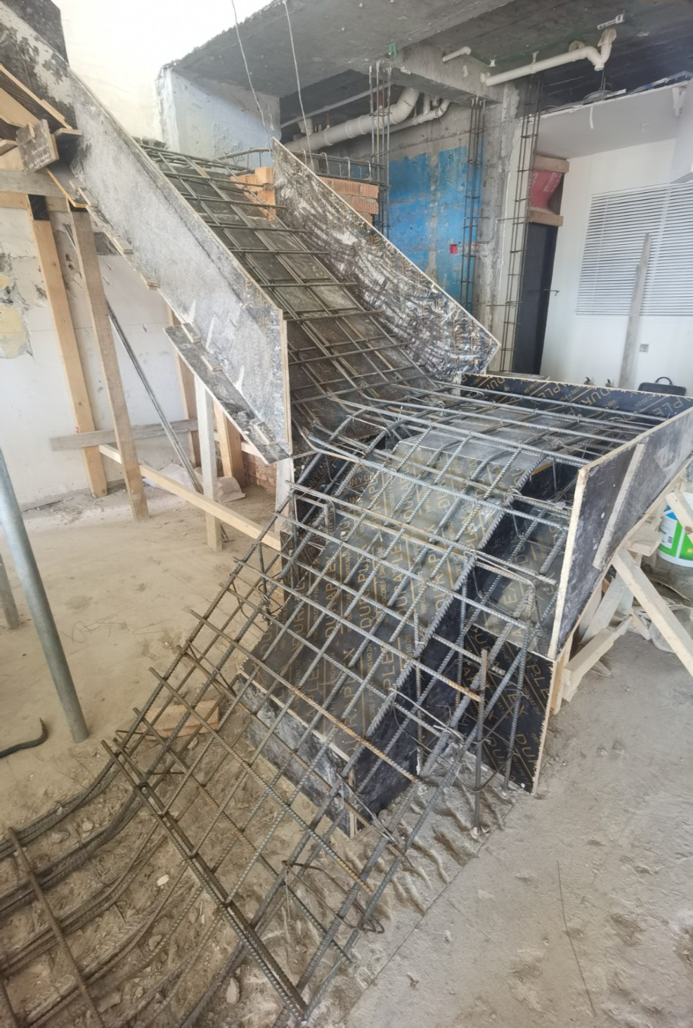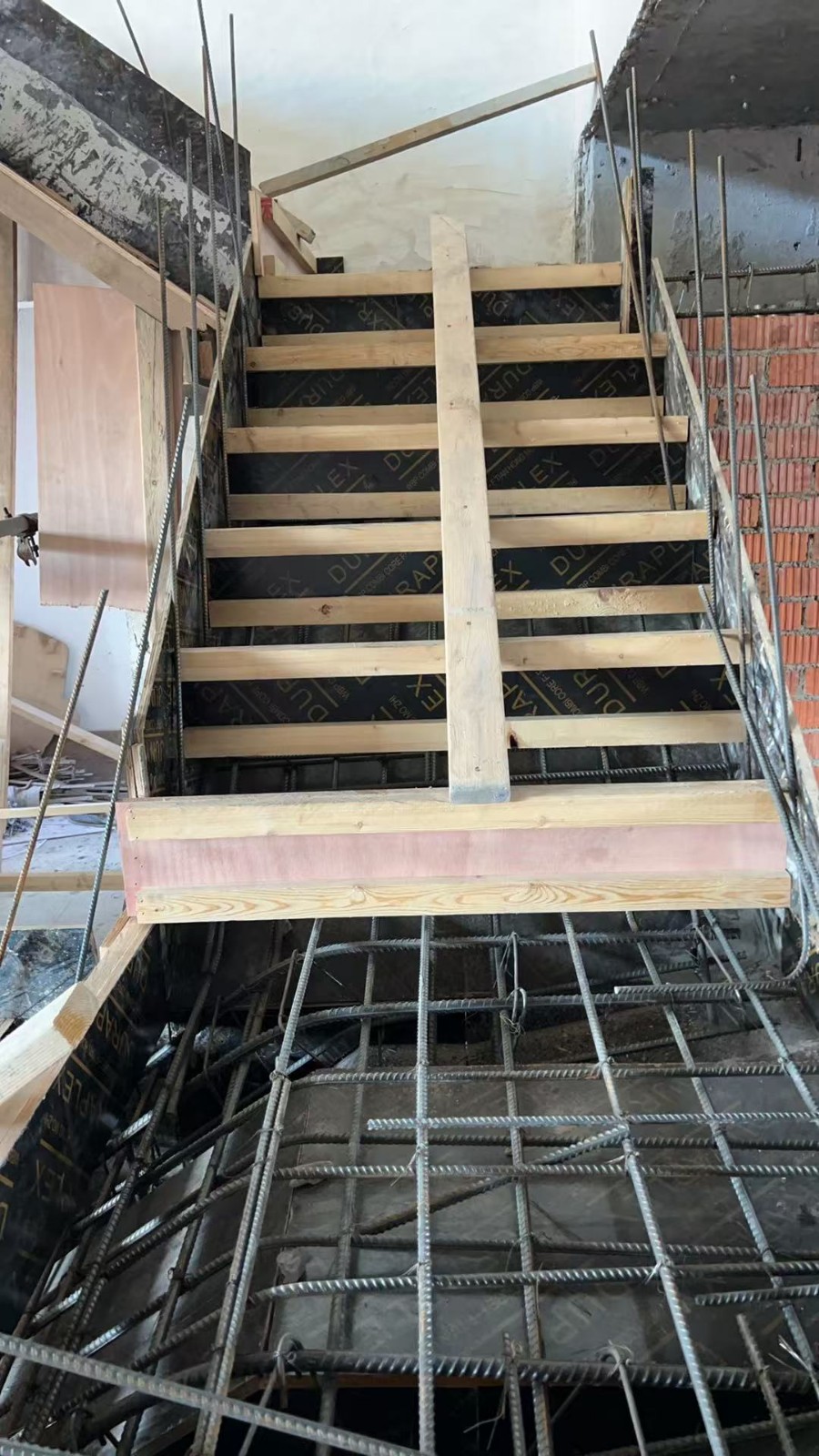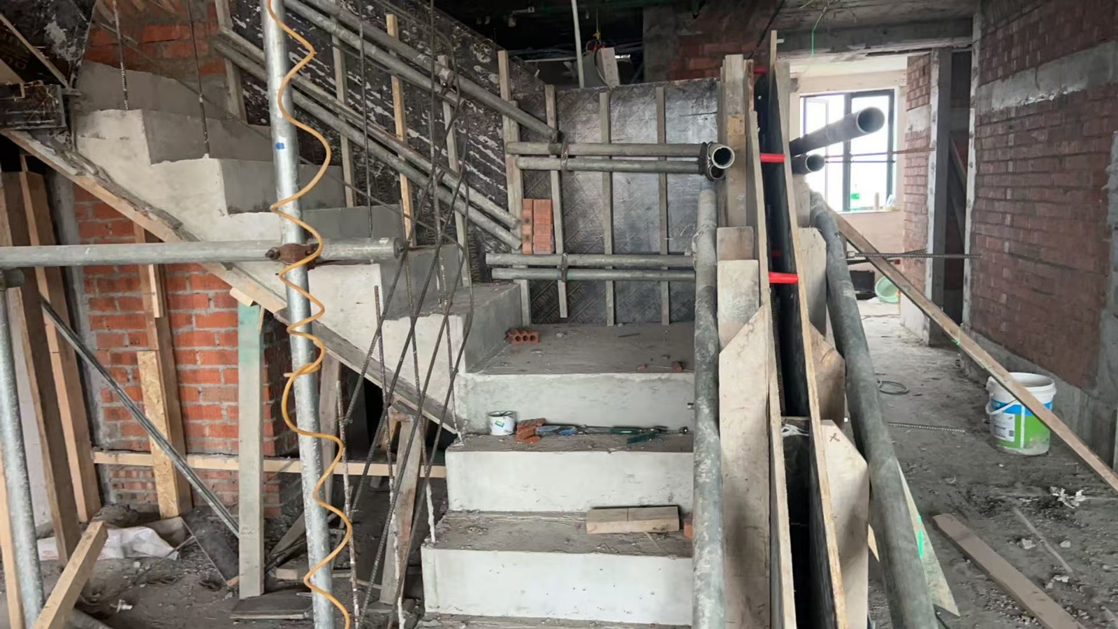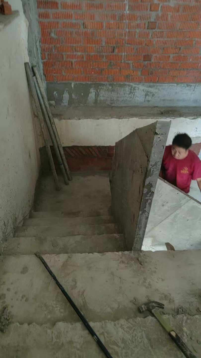 今天工作砌了二樓的墻體, 對樓梯護(hù)欄綁了鋼筋把造型做出來了 , 圈梁固定好粉刷好了 , 后續(xù)將對樓梯扶手進(jìn)行澆筑灌漿。