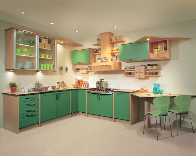 廚房中總是有些小角落。稍大的小角落,主婦們會擺一張小桌子,或幾把便于就餐時用的椅子,設計師建議選用折疊或長度可調(diào)節(jié)的連柜餐桌,不用時將其折疊,而可疊加的椅子,則可存放于柜內(nèi)或桌底;稍小的角落安置推拉式高柜,這種儲藏能力很強的柜體大大減少了對空間的需求。
