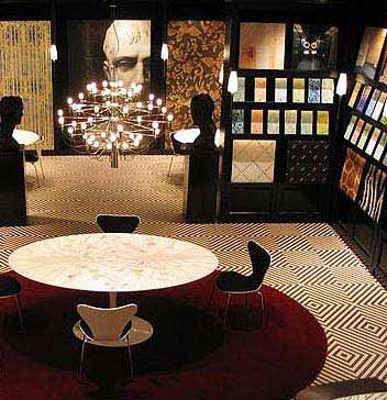 仿天然大理石的古典質(zhì)感墻磚,纏花圍繞的腰線令空間充滿濃郁的古典藝術氣質(zhì)。金色,是大自然(企業(yè)博客|視頻|專題)中至高無上的純色,在燈光的掩映折射下,絢麗而華貴。白色的馬賽克在絢麗中顯得更加清爽,仿佛白色的珍珠透過古羅馬高高的石柱,點點撒落。