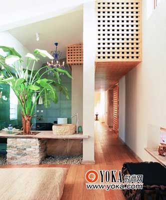 婆娑的芭蕉樹、粗糙的石臺(tái),看上去像是把外面的花園搬進(jìn)了屋里。從生態(tài)產(chǎn)品到生態(tài)家居,隨著國(guó)人環(huán)保意識(shí)的提高,越來(lái)越多的人把保持生態(tài)平衡的綠色觀念引入了生活。與傳統(tǒng)設(shè)計(jì)相比,“生態(tài)家居”更加注重在居室中生理與心理的健康,在室內(nèi)空間的自然性、材料、濕度、溫度等方面有著更為合理的統(tǒng)籌規(guī)劃,從而在更高更廣的范圍內(nèi)營(yíng)造舒適、自然的居住感覺(jué)。