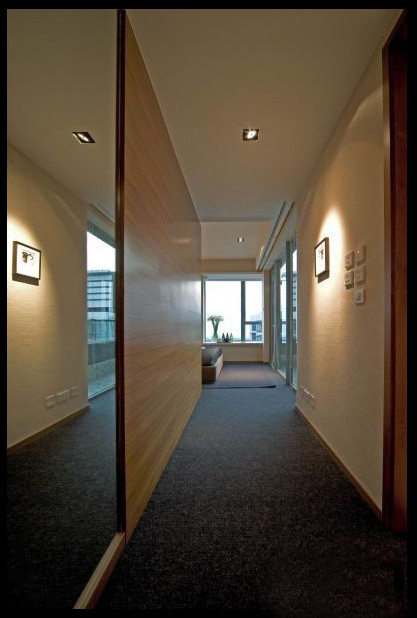 這里是連著臥室過道,原來的房型結(jié)構(gòu)不是這樣的,由于空間過大,為了不至于臥室變得空曠,用一塊簡單的墻板將空間隔開。