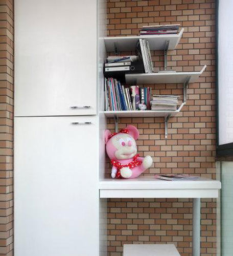 陽臺設(shè)計還不錯有個小書桌,用來看看書辦辦公很不錯。柜子、書架和書桌的組合很實用。