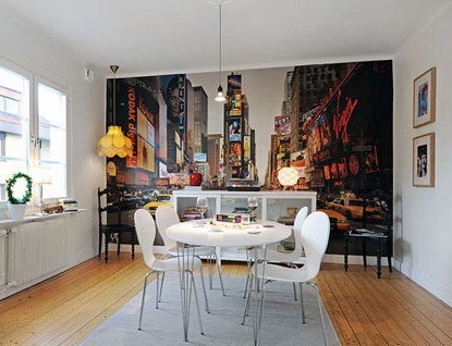 餐廳的另一面墻摩登城市街景的壁畫,第一時(shí)間將我們的視線牢牢吸引,且讓人印象深刻。角落里明黃色復(fù)古燈具,充滿著濃濃的懷舊氣息。醇厚的中性色搭配令就餐空間顯得氣質(zhì)沉穩(wěn)而溫馨感十足。