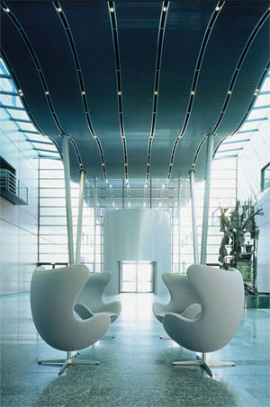雅格布森1902年出生于哥本哈根,1928年從哥本哈根藝術(shù)學(xué)院畢業(yè)。從1930年至1971年去世,他一直致力于自己的設(shè)計(jì)事業(yè)。它的作品呈現(xiàn)出一種"批判的地方色彩",是傳統(tǒng)手法與功能信條的沖撞。概念還加上了雅格布森個(gè)人的審美情趣,從而使其每一個(gè)作品均具有適合的尺度,細(xì)節(jié)和意念。他還為自己的大部分建筑作品設(shè)計(jì)家具和配件,對作品,他注重細(xì)節(jié),材料的選用,傳統(tǒng)與實(shí)用的結(jié)合,從而產(chǎn)生概念與形式。