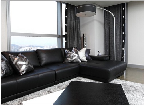 家居中加入別致的落地?zé)?,讓家居充滿樂趣。落地?zé)艨呻S意改變角度,人性化的設(shè)計(jì),讓生活更加便利。很有質(zhì)感的黑色皮質(zhì)沙發(fā)正體現(xiàn)出低調(diào)中的小奢華,沙發(fā)窗簾布上銀色鋼圈,為家居空間增添更多圓滑的線條。