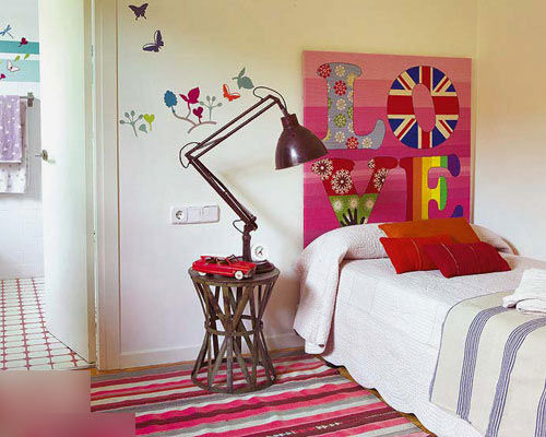 床頭明艷的拼接面料個性十足,純白色的棉質(zhì)床品柔和了豐富的色彩。圓點、花案、抽象圖案,以及艷麗的色彩在大面積留白中,平衡了繁復(fù)與簡約兩種氣質(zhì)。