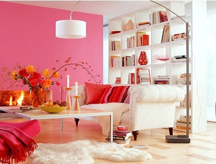 粉紅色給人以溫暖、放松的感覺,適宜在客廳里使用。如地板用柔和的粉紅色,然后在選用同色的布藝靠墊以及粉紅色印花的窗簾,在白色的沙發(fā)、米黃色墻的襯托下,再加點兒淡藍色,就會形成花壇般的羅曼蒂克格調,頗適合年輕人的品位。