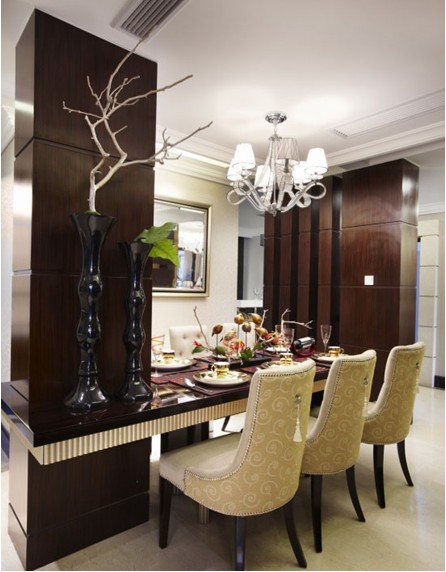 開(kāi)闊的空間中,設(shè)計(jì)師采用了古典與老上海結(jié)合的手法,居室以奢華的淺金色調(diào)配以沉穩(wěn)大氣的木飾面、各類(lèi)復(fù)古花型紋樣充斥于壁紙、軟裝擺件、裝飾布藝中,體現(xiàn)該居所奢華但不繁復(fù)、內(nèi)斂又不張揚(yáng)。各式老上海小品,古樸的鳥(niǎo)籠、略顯沙啞的留聲機(jī)、百樂(lè)門(mén)式的吧臺(tái),茶余飯后、身處其中,音樂(lè)悠揚(yáng)的響起,仿佛又馳騁于十里洋場(chǎng)的老上海之中,與屋主高雅的品味、對(duì)于生活享受的態(tài)度完全相符。