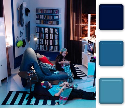 搭配點(diǎn)評:同深淺的藍(lán)色運(yùn)用營造了安靜的空間氛圍,可以使好動的男孩子靜下心來。