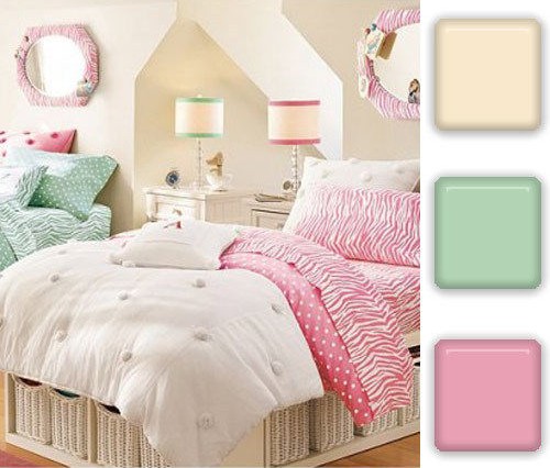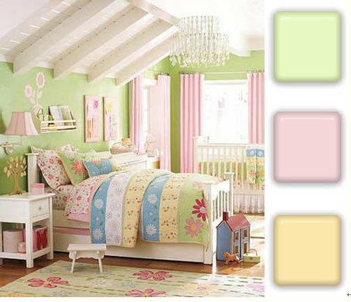 搭配點(diǎn)評:浪漫的淡綠色臥室,采用了同樣顏色的墻壁與床品,打造了可愛、浪漫的風(fēng)格小空間。