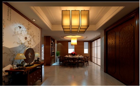 新中式的特點還在于將中式的元素合理的強化并藝術(shù)化的改造,將燈的造型豐富化,強化了視覺效果;使燈光的光影層次富有變化,增添了空間的魅力;
