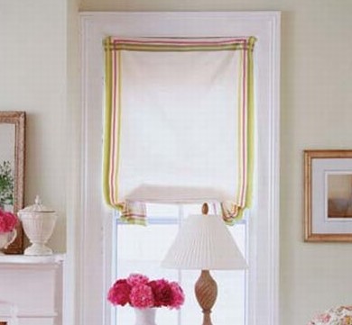 在這款羅馬窗簾中將裝飾品放在四周?chē)鷷?huì)讓窗簾看起來(lái)很整潔。當(dāng)窗簾卷起,絲帶裝飾的邊緣會(huì)呈現(xiàn)出優(yōu)雅的窗簾褶。我們將不同寬度和顏色的絲帶組合在一起。安排好設(shè)計(jì)后,將窗簾放置在一個(gè)平面上平整好,然后將絲帶從窗簾的外沿開(kāi)始一次一層地粘好??梢宰尳z帶比窗簾的寬度長(zhǎng)出2.5厘米,這樣在最后完成時(shí)絲帶就可以折一下粘在窗簾的背面。