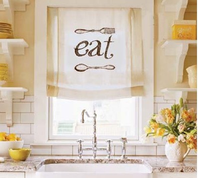 要加寬羅馬簾,首選剪些條紋布,長(zhǎng)度相當(dāng)于你實(shí)際裝飾的2倍(這里選的是20厘米長(zhǎng)),對(duì)折熨燙長(zhǎng)邊,然后折0.3厘米毛邊繼續(xù)熨燙。把燙好的毛邊粘到窗簾上,一頭粘正面,一頭粘背面,輕輕重合。用你喜歡的字體,每張紙印一個(gè)單詞。你可上網(wǎng)或到剪貼畫(huà)里找到銀餐具的圖案,并用復(fù)印機(jī)放大復(fù)印。把放大好的圖案放在窗簾下用鉛筆構(gòu)出輪廓,按陰影輪廓以黑色布料馬克筆描好。將窗簾掛好并用大頭釘把裝飾固定在窗戶(hù)上。