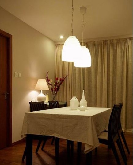 俗話(huà)說(shuō)“民以食為天”我們先從餐廳開(kāi)始吧。古典的餐桌椅,餐桌上鋪著一塊餐布,這塊布有點(diǎn)落伍了,現(xiàn)代家庭很少有用到這樣子的了。餐桌上的燈具及角落里茶幾的茶瓶臺(tái)燈都以現(xiàn)代風(fēng)格為主的,這塊有點(diǎn)兒OUT的桌布是怎么出現(xiàn)的呢?
