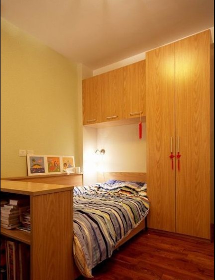 頭在柜子的包圍下就有了安全感,床頭燈懸掛在上方,開(kāi)關(guān)便就在枕頭旁邊。旁邊是常備的衣柜,而衣柜的中國(guó)節(jié),則是中國(guó)傳統(tǒng)農(nóng)歷新年的最佳掛件表示。