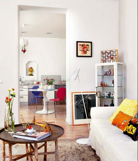 本期案列為位于西班牙的馬德里一幢繽紛多彩的公寓樓的某一個單元,60平左右的小戶型。走進(jìn)這個色彩繽紛的小屋子撲面而來的讓人感覺平和而溫馨。公寓的主人是一對留學(xué)生夫婦,不是保留本國的文化特色,充分融入這個這國家的文化氛圍,很精彩。