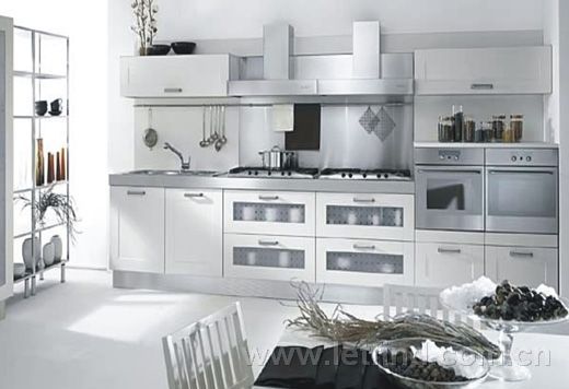 櫥柜門方面,現(xiàn)在流行的有實(shí)木板柜門、烤漆板柜門、水晶板柜門和不銹鋼板柜門,都比較便于清潔且耐用,業(yè)主可以根據(jù)櫥柜所處位置和廚房整體風(fēng)格選擇。