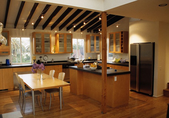時至今日,這種“省電費眼”的照明方式以及落伍了?,F(xiàn)代廚房的燈光設計分為兩個層面,除了對整個廚房的照明,在洗滌區(qū)和操作臺也要增設櫥柜專業(yè)射燈。這類射燈光線適度,開關(guān)方便,讓你眼睛得到解放。