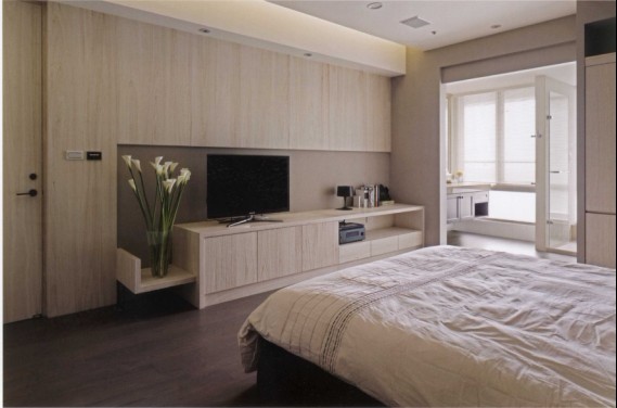臥室里的墻壁都采用米白條紋,這是一種簡(jiǎn)約的溫馨表達(dá)方式。木皮裝飾手法現(xiàn)在其實(shí)很少見,裝修出來(lái)的效果是既省成本也很健康。簡(jiǎn)約裝修手法符合人們對(duì)于輕裝修重裝飾的這一理念。