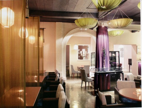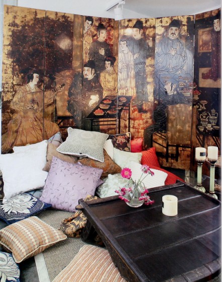 看看這間室內(nèi),色彩很豐富,但仔細(xì)觀察,這里的綠燈罩,黃綾垂簾和紫羅蘭包柱都是可以更換的,稍加改動就可以成為另一個天地。