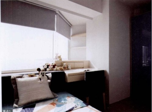 臥室由結(jié)構(gòu)產(chǎn)生了畸零空間,設(shè)計(jì)師因此在窗前設(shè)計(jì)書(shū)桌,再利用階梯的概念將收納柜體向上延伸,將空間難題完美地解決。