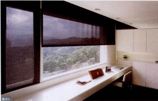 特意將書桌面向窗,讓屋主閱讀時(shí)也能欣賞到窗外的美景,從柜體延伸的書桌有一氣呵成的順暢感。