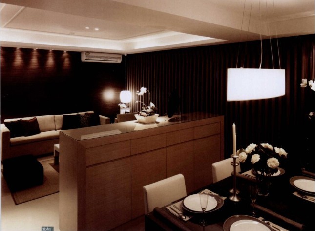 客廳與餐廳之間以矮柜為隔,坐在客廳沙發(fā)上看過去,矮柜則好擋住了餐桌,不會阻隔視線。而位于客、餐廳中間的矮柜,也具備了雙重功能,一喧是電視柜,另一邊則是餐柜。小柜子可以坐為臨時(shí)坐凳出現(xiàn),而里面則是格子空間,作為收納用。