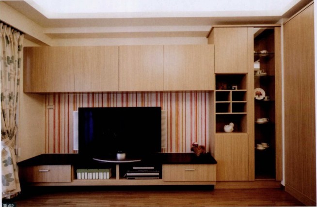 定制柜樣式多元化,而且可以根據(jù)需要量身定制,以滿足收納與展示需求,且節(jié)省預(yù)算.這個(gè)電視柜兩側(cè)及上方都是收納柜的空間,既不影響電視柜的美觀也不影響收納的實(shí)用。