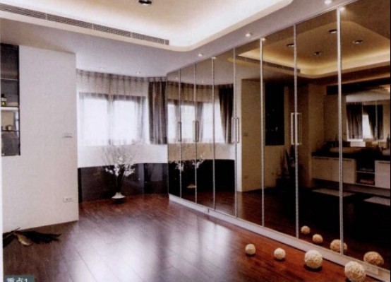 茶色鏡面門片的衣柜,不僅可以讓空間擴大,還可以將無法避開的結(jié)構(gòu)柱隱藏其中,利用隱藏式門片設(shè)計,將收納功能充足的更衣室隱藏其中,空間既具整體感,也有美化的效果,適度使用整體家具,再搭配木作嵌入黑鏡的門片收邊,可以有效降低裝修預(yù)算。