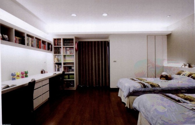 概要:   本案中的業(yè)主有兩個(gè)正在讀小學(xué)的孩子,業(yè)主在家居設(shè)計(jì)時(shí),除了風(fēng)格的營(yíng)造外,功能相對(duì)重要。設(shè)計(jì)師讓色彩單純化,把設(shè)計(jì)重點(diǎn)放在收納功能上。兩個(gè)女孩,設(shè)計(jì)師以一間大的小孩房讓兩個(gè)女孩共同生活,擴(kuò)大生活空間的同時(shí),也增加了收納面積,為小女孩打造高效率的收納空間  兩個(gè)女兒正是讀書階段,因此女兒房的閱讀空間的打造相對(duì)重要,而收納則以書籍為主,利用書桌吊柜上下空間及延伸的落地書柜收納書籍,使空間整潔、利落,也讓小孩讀書更有效率。
