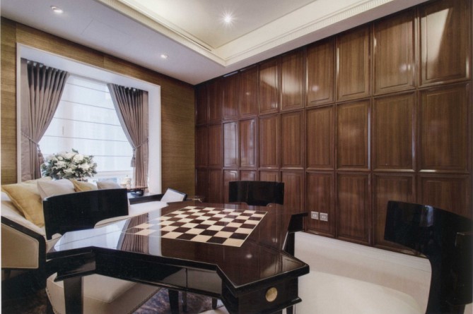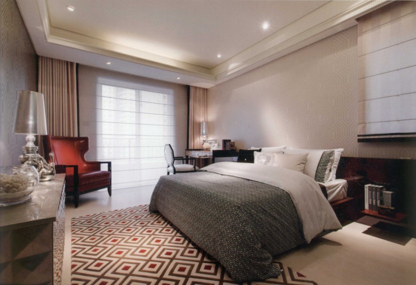 本戶型面積較大,為了打造富豪門第、都會城堡般的格調(diào),大量運用對比強烈的色彩,耀眼夸飾的藝術造型突顯其不凡,以展現(xiàn)時尚莊園豪邸的大氣尺度。在空間裝修上,設計師運用西方古典工藝的嚴謹精湛手法,同時將東方文藝復興的精神注入其中。整體空間氛圍傳遞著西方的浪漫,卻也輕訴著東方的曼妙----透過古典與現(xiàn)代裝飾藝術的交匯融合,顯示出復古、融匯、創(chuàng)新與再生的精神。老上海的清新魅力,為空間注入豐碩的生命力,也為居住者帶來全新的心靈悸動。