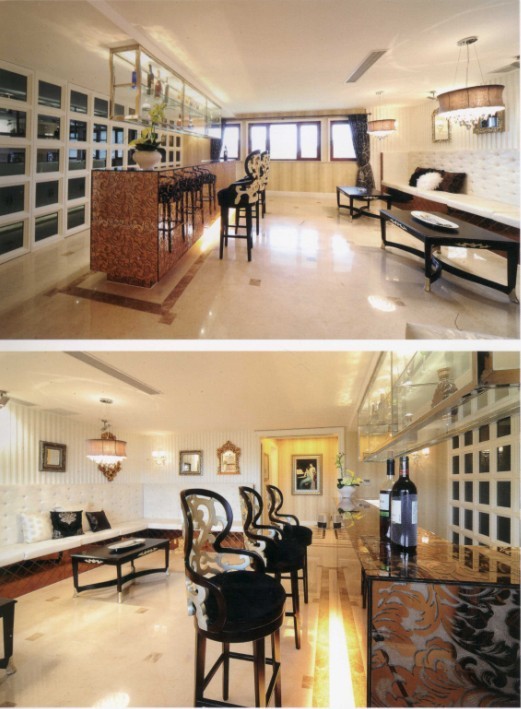 餐廳:擺設(shè)整齊有序的餐具、透明的高腳杯、華麗的餐布、象征古典主義風(fēng)格的燭臺(tái),都讓人有身臨其境的懷舊情愫。設(shè)計(jì)師將古董擺設(shè)在餐廳最醒目的位置,從而來體現(xiàn)室內(nèi)悠久而深遠(yuǎn)的歷史文化內(nèi)涵。