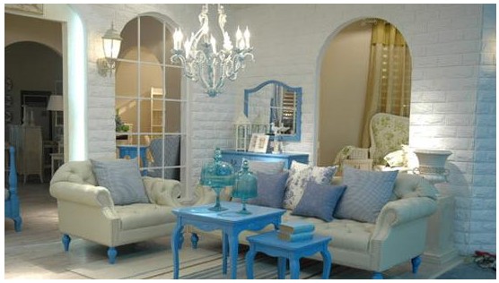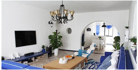 地中海首先映入眼簾的就是那片經(jīng)典的海藍(lán),為了在視覺(jué)上第一眼就渲染出濃郁的地中海風(fēng)情,客廳整體色調(diào)為藍(lán)白色,空間多選白色,再飾以明媚的天藍(lán),明朗又干凈,讓人仿佛徜徉在海洋之上。