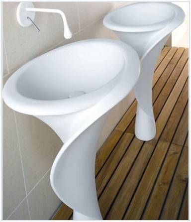 意大利的一家家具設(shè)計公司從馬蹄蓮上得到靈感,而創(chuàng)作的一系列花朵造型的潔具。該系列包括了一個獨立的浴缸,兩個洗臺盆和相匹配的白色水龍頭,簡潔的線條雕刻讓浴室看起來富有創(chuàng)造性。