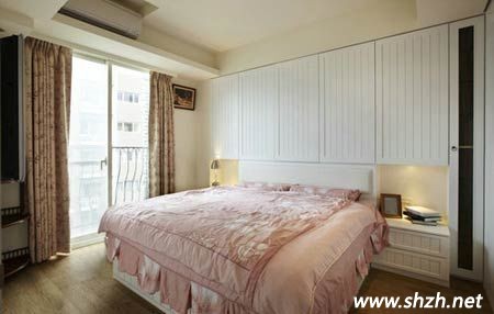 主臥室預告臥房內(nèi)的色彩主題,白色柔美的氛圍,在床頭的直線造型內(nèi)藏入足量收納空間,機能與美觀兼具。