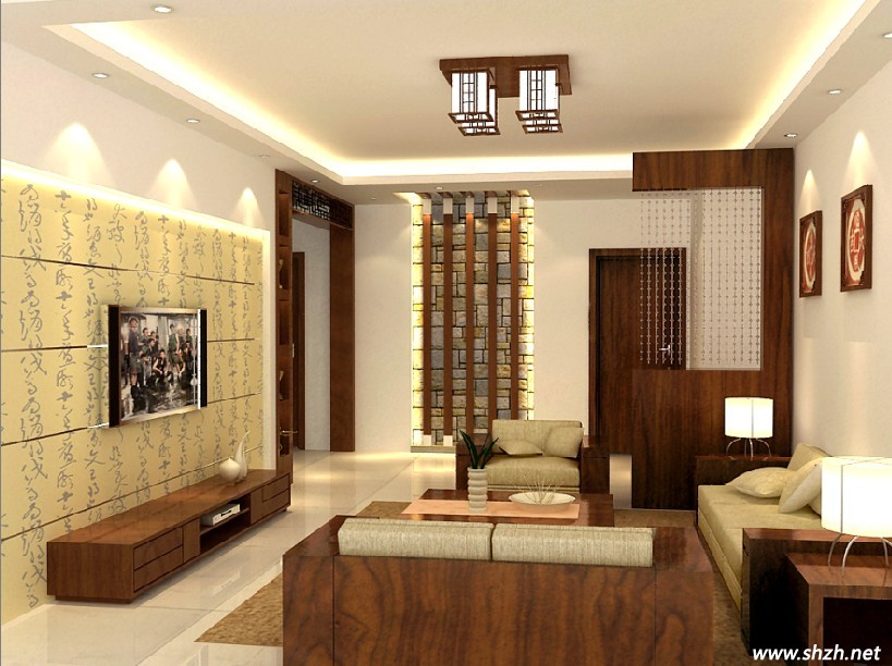 首先在客廳的設計上,我們可以把中式風格的古典與現(xiàn)代風格的簡約相結(jié)合,呈現(xiàn)出強烈的視覺沖突。比如可以在客廳醒目的位置上掛上中式的書法、山水畫來加以裝飾。時尚與古典的結(jié)合,給人煥然一新的感覺。