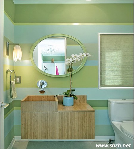 對于小戶型來說,衛(wèi)生間以簡潔設(shè)計為主,藍(lán)綠相間的條文背景墻,頗為清新靚麗。木質(zhì)洗浴臺上擺設(shè)盆栽,春的景象映入眼簾。柔和的燈光照耀,十分溫和舒適。