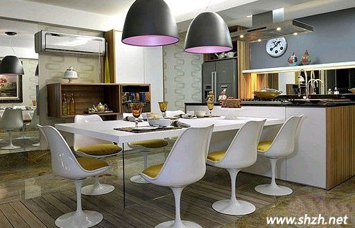如果你的開放式廚房是餐廚客一體式的,就要考慮客廳、餐廳的家具與廚房家具的協(xié)調(diào)性。以確保“開放式廚房”能自然地融入到整體家居氛圍內(nèi)。開放式廚房的品質(zhì)也是非常重要的,否則一款難看的整體廚房還不如把它“封閉”起來。