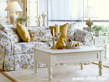 歐式田園大致可分為英式田園風格和法式田園風格。英式田園風格的家具多以奶白、象牙白等白色為主,使用高檔的樺木、楸木等做框架,配以高檔的環(huán)保中纖板做內板,使用高檔油漆處理,制作以及雕刻都是純手工,線條細致,造型優(yōu)雅。英式田園風格家具還有另一大主要特點---華美的布藝,布面花色秀麗,多以紛繁的花卉圖案為主,碎花、條紋、蘇格蘭圖案是英式田園風格家具永恒的主調。法式田園風格最顯著地特征是家具的洗白處理及配色上的大膽鮮艷,洗白處理使家具流露出古典的雋永質感,黃、紅、藍的色彩搭配,則反映除了豐沃、富足的大地景象,而椅角被簡化的卷曲弧線及精美的紋飾也是法式優(yōu)雅鄉(xiāng)村生活的體現(xiàn)。