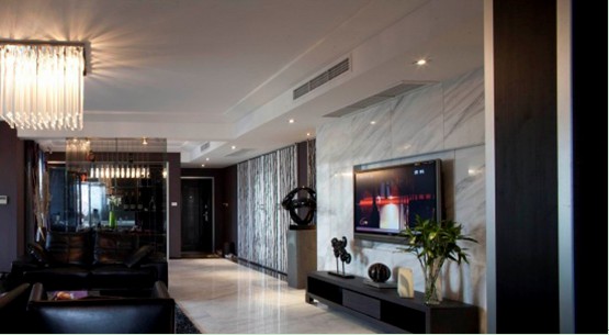 概要: 設(shè)計師試圖營造一種低調(diào)奢華的現(xiàn)代簡約氛圍,一種既厚重華麗又具時尚特色的視覺效果。整個空間用硬朗的金屬和玻璃與柔性的墻紙搭配,及黑白兩色的大理石地面相互映襯,再加上家具和軟飾的和諧統(tǒng)一,使的整個空間時尚簡約但又不失奢華。本案中,設(shè)計師十分注重細(xì)部的處理及創(chuàng)新設(shè)計;客廳 現(xiàn)代風(fēng)格的裝飾其實是設(shè)計師的試金石,一般的設(shè)計師以為現(xiàn)代風(fēng)格就是簡單。