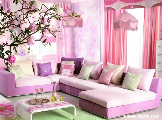 客廳淺玫瑰紅或淺紫紅色調(diào),再加上少許土爾其玉藍(lán)的點(diǎn)綴是最“快樂”的客廳顏色,會讓人進(jìn)入客廳就感到溫和舒服。