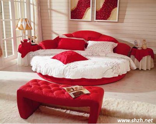 臥室自然采光效果要好,地面可鋪木地板,床邊鋪一小塊地毯;在色彩的應用上宜選用粉色、桃紅、大紅色等喜慶、溫馨的色彩。窗簾、床罩、沙發(fā)最好采用同一色系,親切典雅;窗簾應采用外薄內厚的雙層式樣,既方便采光,又不影響休息,還能很好的保證私密性。