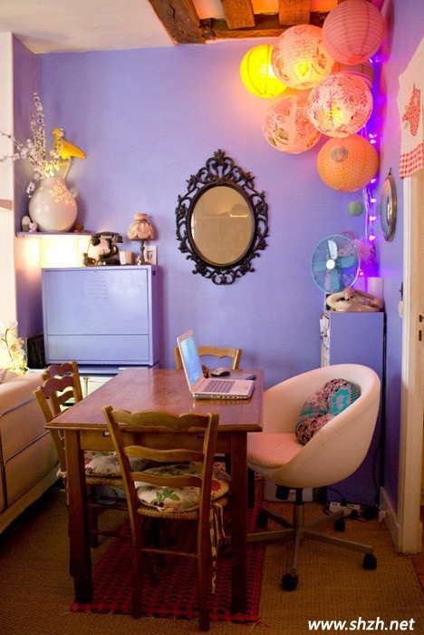 小小的餐廳融入了許多流行元素,紫色的墻面神秘而性感,歐式古典風格的鏡子個性但是并不突兀,房間右上角燈籠樣式的照明燈是中國元素的應用。如此小巧的空間卻可以讓諸多元素巧妙的共存,我們不得不佩服設計師的獨具匠心。之前就說過現(xiàn)在的餐廳不僅僅只是用來就餐了,那么就像這樣的一個小餐廳完全可以成為你家里的“辦公室”,獨特而美妙的享受。