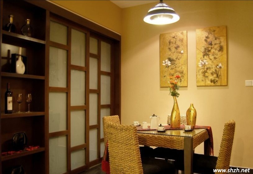 門、酒柜、裝飾畫,都充滿了亞洲的元素。設(shè)計風格以濃郁、地道、熱情為主格調(diào)。裝飾元素要突出地域特點
