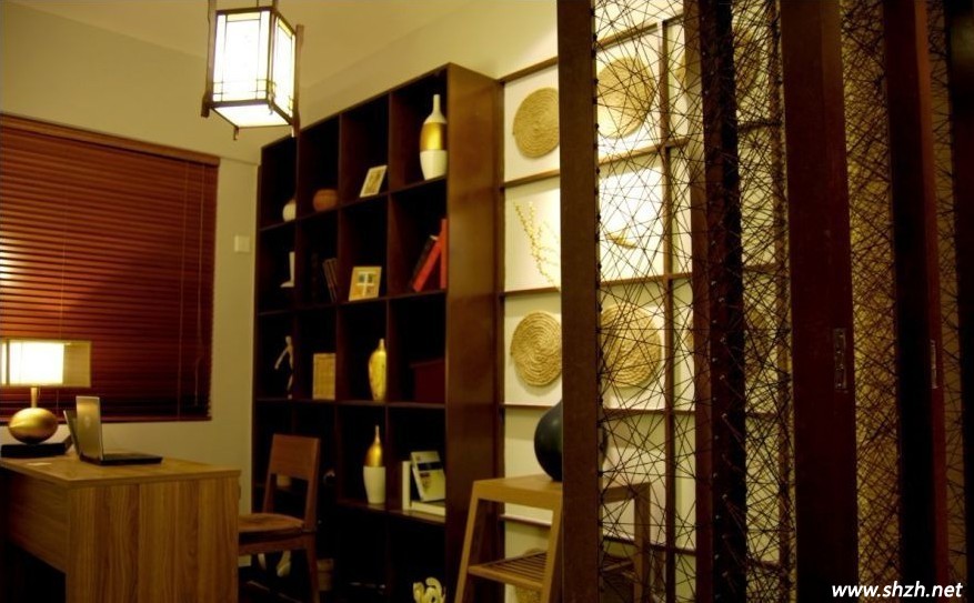 略有些復(fù)古風格的書房,家具也有東南亞風格的特點。